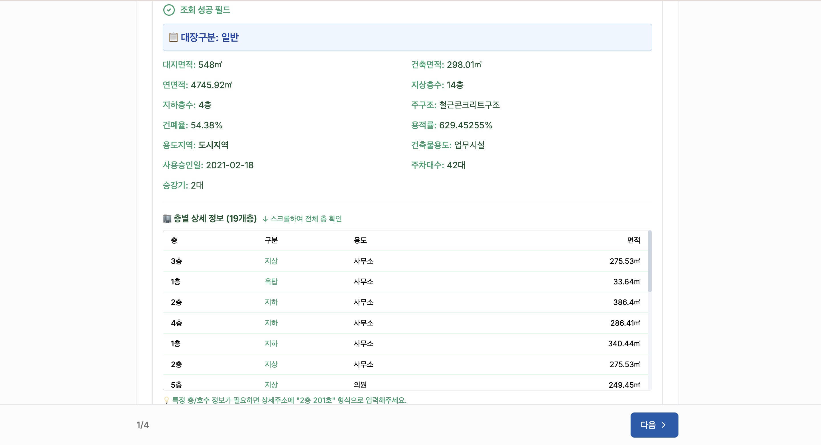 상가·오피스·공장에 특화된 실거래가, 건축물대장, 토지대장 정보를 한곳에서 확인하세요.